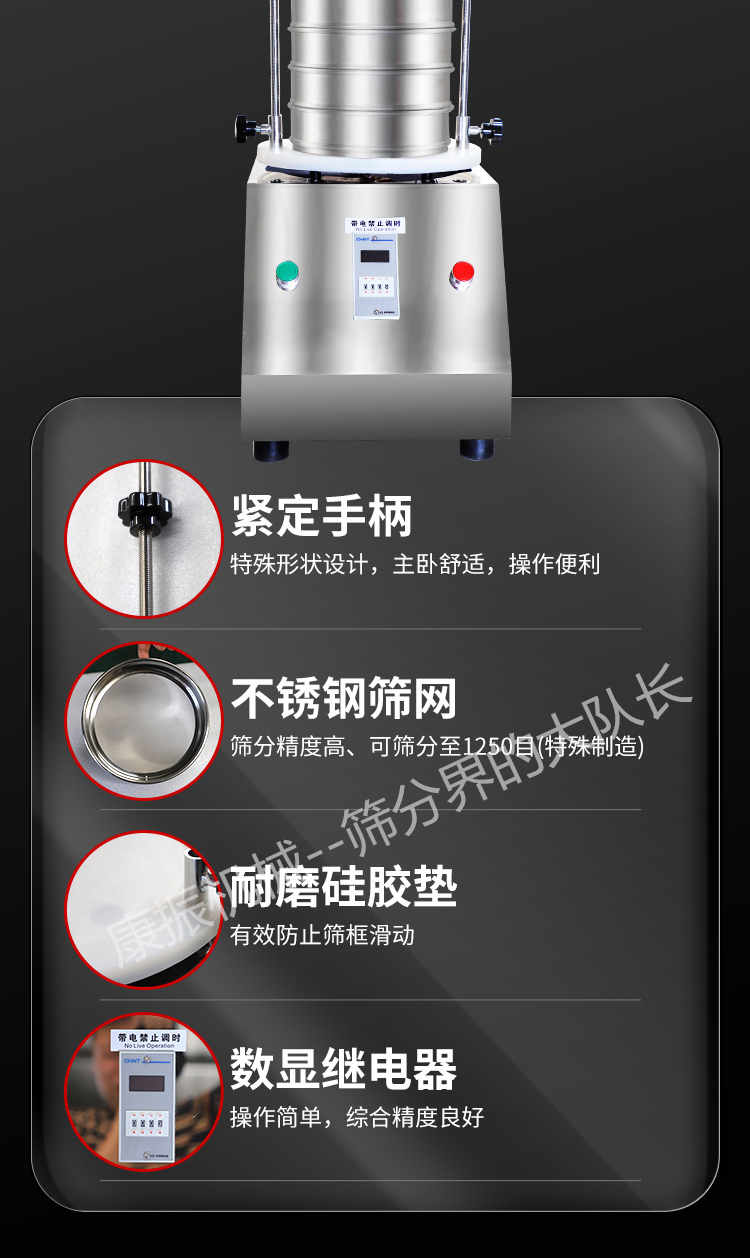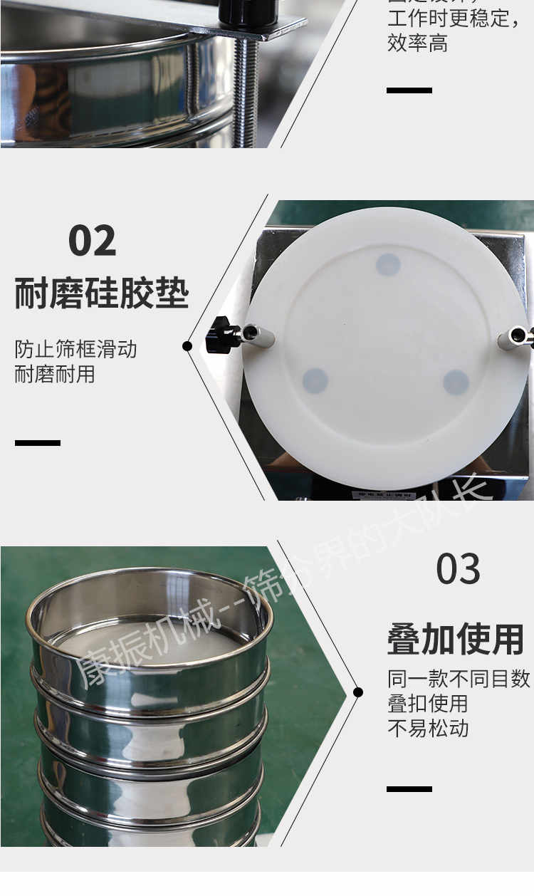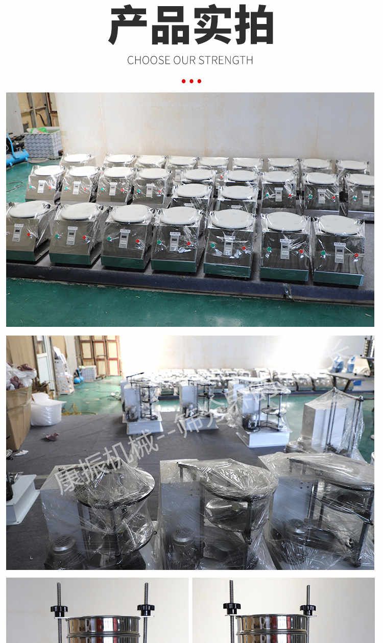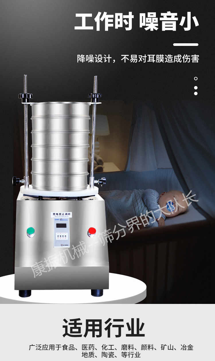 “機械篩分”將篩子按孔徑大小疊在一起,給料放在頂上一層篩子上,并加上蓋和底盤,一般疊5~6個篩子。然后放在機械振篩器上進行機械振動篩分。通常,振動時間為20分鐘。檢測篩分質(zhì)量時,再用振篩器振篩器振篩5分鐘,如每分鐘篩下量小于0.2%試驗樣量即為合格,對于粗粒物料,過篩率小于1%即可。如篩分過程中損失量超過總篩分量的0.5%時,試驗必須重新取樣進行。為避免損失和延長篩分時間,有時在開始篩分時先用細的篩子將粉塵篩除