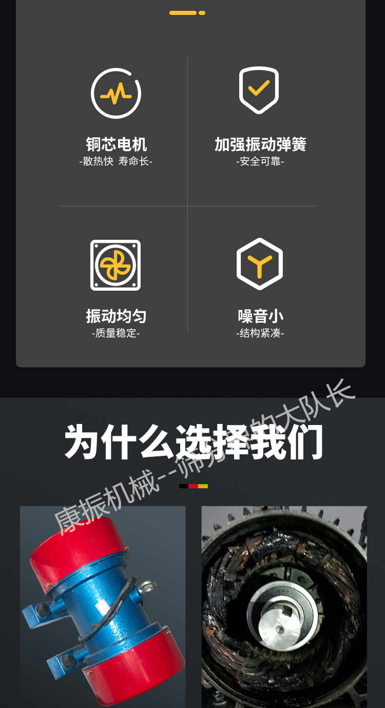 2、振蕩電機(jī)為激振源,噪聲低、耗電小、保護(hù)簡(jiǎn)略。
