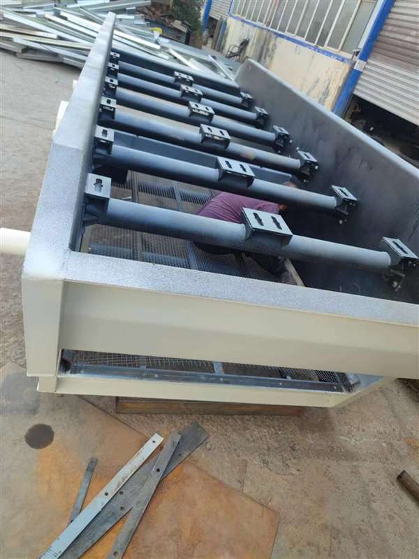 脫水篩是利用振動(dòng)電機(jī)及激振的原理,當(dāng)兩臺(tái)電機(jī)作同步反向旋轉(zhuǎn)時(shí),篩體的運(yùn)動(dòng)軌跡為一直線(xiàn)。物料脫水篩分,在篩面上被拋起,同時(shí)向前運(yùn)動(dòng),從出料口排除,完成對(duì)原料的脫水篩分。用于選礦、尾礦、礦山、冶金、等行業(yè)的物料脫水篩分分級(jí)。