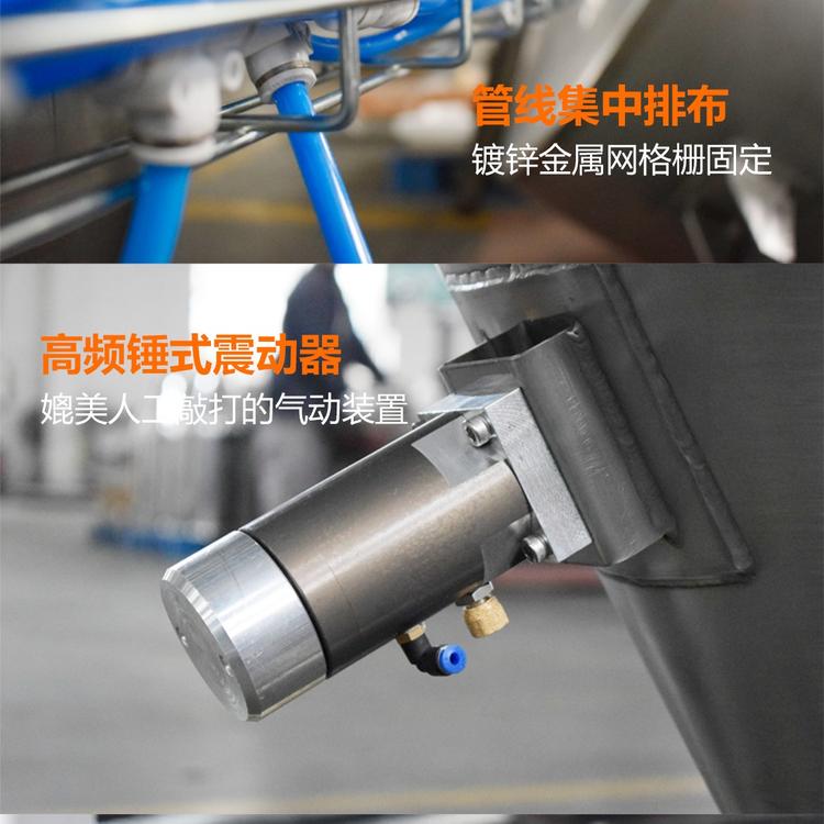 破拱方式:可選擇以拍打裝置促使噸袋內(nèi)的粉粒狀物料下落或采用以對(duì)柔軟的大袋(噸袋)進(jìn)行“按摩”的方式促使其物料下落的破拱排料裝置。