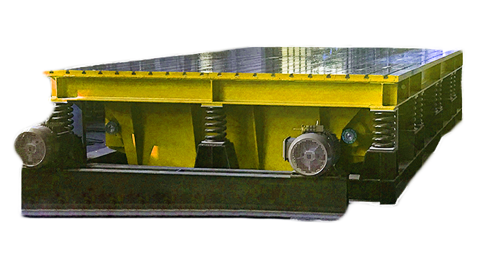 康振礦物鑄件振動(dòng)平臺(tái),主要為礦物鑄件的振實(shí)而研發(fā),原理和結(jié)構(gòu)在德式工藝的基礎(chǔ)上,以及客戶(hù)實(shí)際使用中的反饋,做了大量的改進(jìn)和優(yōu)化而推出的一款新型振動(dòng)平臺(tái)。主要包括機(jī)座,平臺(tái)殼體,安裝在殼體內(nèi)的若干個(gè)激振箱,貫穿激振箱的傳動(dòng)軸,激振器,驅(qū)動(dòng)電機(jī),變頻控制裝置,減震彈簧等。